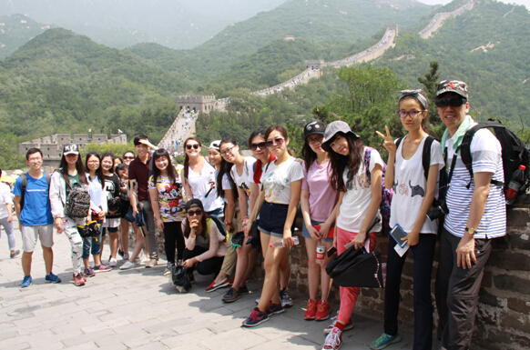 随后,两校学生按计划前往八达岭长城。大巴车行驶在盘山公路上,大家看着两侧的崇山峻岭已然按耐不住内心的激动之情,景点入口处“不到长城非好汉”的石碑更是点燃了内心对长城的无限憧憬。攀爬过程中,尽管部分路段过于陡峭,令人瞠目结舌,但两校师生气氛友好,互相鼓励搀扶,最终绝大部分师生都登上了顶峰。看着脚下的路,大家不禁想到修建长城的工匠们是何等辛苦,长城无愧于“世界七大奇迹”之一的称号。看着周围的中外游客,不论老人孩子,一张张洋溢着兴奋与喜悦的脸,大家不禁感叹祖国大好河山的神奇魅力,一座长城可以把不同年龄,甚至不同种族的人联系到一起,为了一个目标共同努力奋斗。